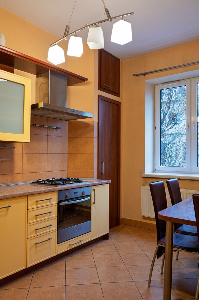 Mieszkanie zachowało swój autentyczny układ i liczne oryginalne elementy, oferując nowemu właścicielowi możliwość przeprowadzenia prac modernizacyjnych i aranżacyjnych zgodnie z własną wizją, z pełnym poszanowaniem historycznego charakteru wnętrza.